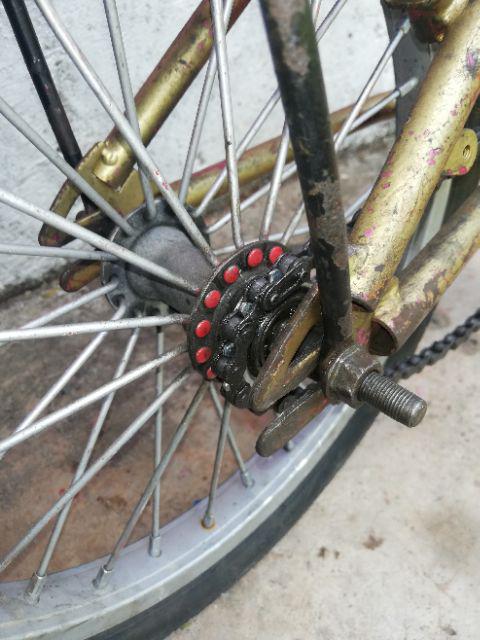 Dak2 yg lahir taun 80 an kena igt ni. Basikal fixie saiz24 tanpa tayar luar dan dalam sesuai umur 11tahun ke atas body color touchup merah handle touchup putihtempatduduk balut kain Txr pantherpemegang hndle baru brake depan ada. Apa yang aku tahu basikal ni di panggil basikal fixed gear atau fixie di kalangan dorang nihApa yang lebih menarik bagi aku basikal ni ditunggang tanpa breakBile ditanya macam mana nak break.